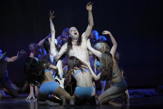 Musikalisch war dieser Abend ein absoluter Gewinn. Bereits die Besetzungsliste ließ Vorfreude aufkommen, die voll erfüllt wurde..Allen voran glänzte Johannes Martin Kränzle, der seinen Alberich mit Furcht heischender Überzeugung darbot. Als schmierige Gestalt mit fettigen Haaren und Goldkettchen wirkte er wie ein personifizierter Lustmolch des 21. Jahrhunderts, der nicht nur das schnelle Geld, sondern auch die schnelle Liebe sucht. Seine Baritonstimme offerierte ein breites Interpretationsspektrum – von geschmeidig-toller Verliebtheit bis hin zu düster-drohenden Verfluchungen – all dies bei deklamatorisch einwandfreiem Gesang und charismatischer Ausführung und kraftvoller Stimme. Alberichs Ausruf „Bin ich denn frei, wirklich frei?“ wird zu einer Frage von geradezu erschreckend fundamentaler Bedeutung. Eine Frage, die man sich dank Kränzles ins Mark gehender Interpretation sofort selbst stellt.