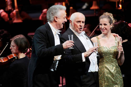 Etwas dezenter legte der kurzfristig eingesprungene Johannes Martin Kränzle sein heiteres Spiel an, er intensivierte kontinuierlich die Lebensfreude des Lebemannes Eisenstein. Kränzle wählte eine treffliche Dosierung zwischen Klamauk und großbürgerlicher Parodie.